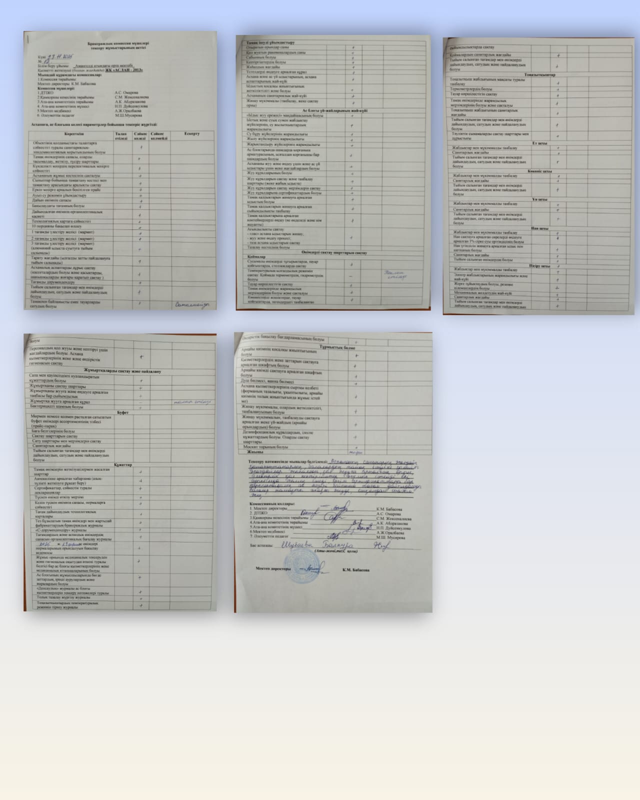 Комиссия мүшелері асхананың тазалығы, ас әзірлеу және тарату аймақтарының санитарлық талаптарға сәйкестігі, асхана қызметкерлерінің арнайы киімдерінің талапқа сай болуы, жеке гигиена ережелерінің сақталуын тексерді. Сонымен қатар оқушыларға берілетін тағам мөлшерінің бекітілген ас мәзіріне және белгіленген нормаларға сәйкестігі бақылауға алынды.